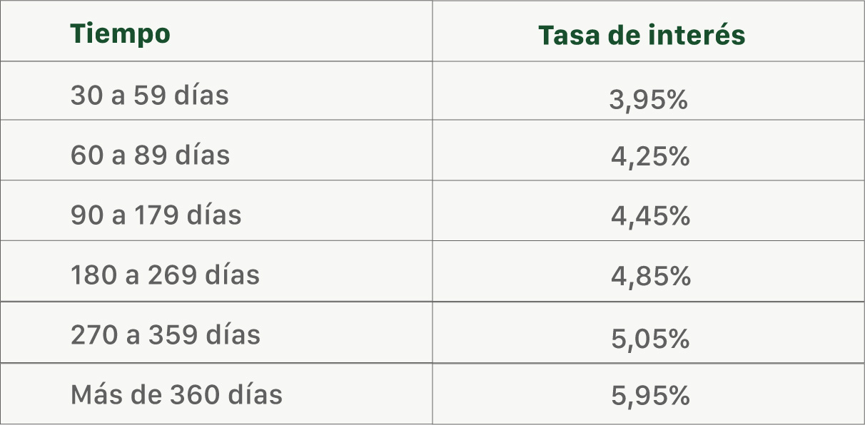 - Puede cobrar los intereses de forma mensual o al vencimiento.